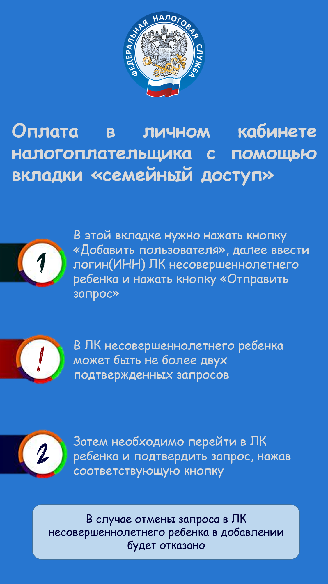 ? Оплатить налоги за ребенка также можно в Личном кабинете налогоплательщика с помощью вкладки «Семейный доступ». Подробнее об этом читайте в карточках.