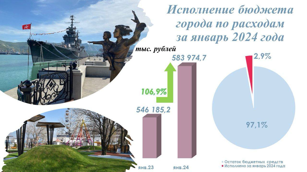За январь 2024 года бюджет по расходам исполнен в объеме 583 млн 974,7 тыс. рублей, что на 106,9 % выше, чем за аналогичный период прошлого года и составляет 2,9 % от общего объема расходов на текущий год.